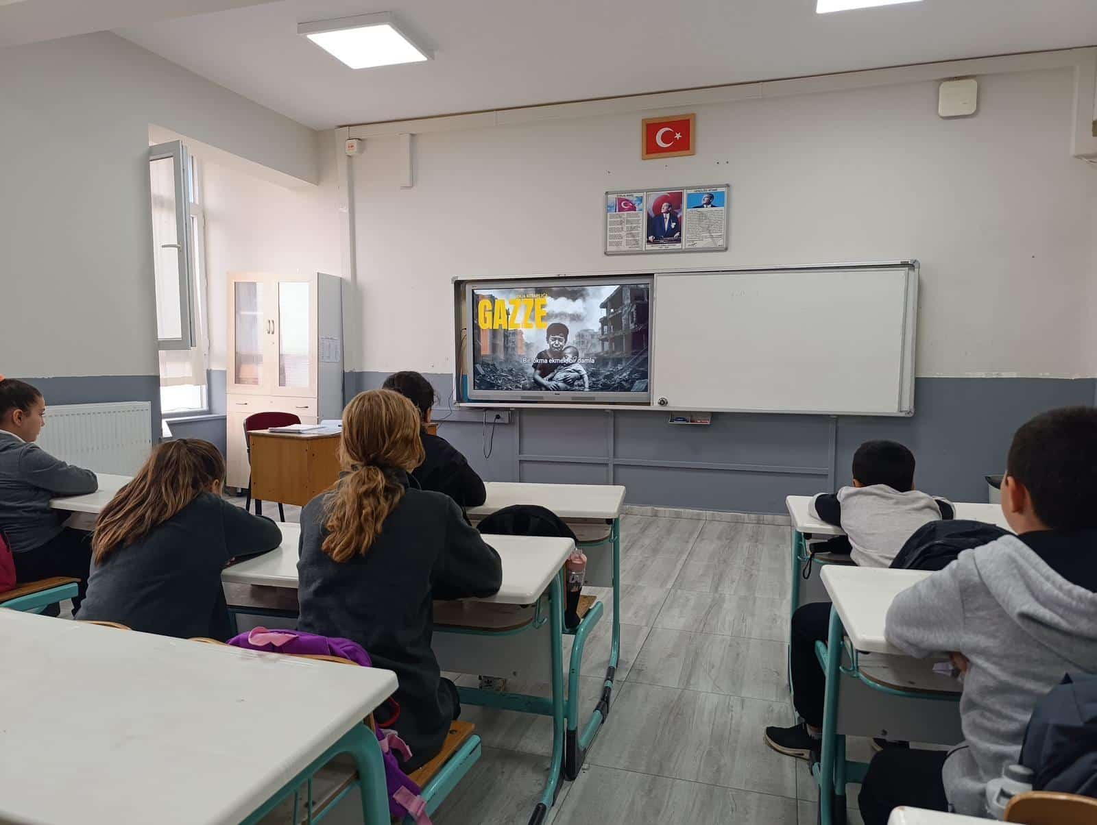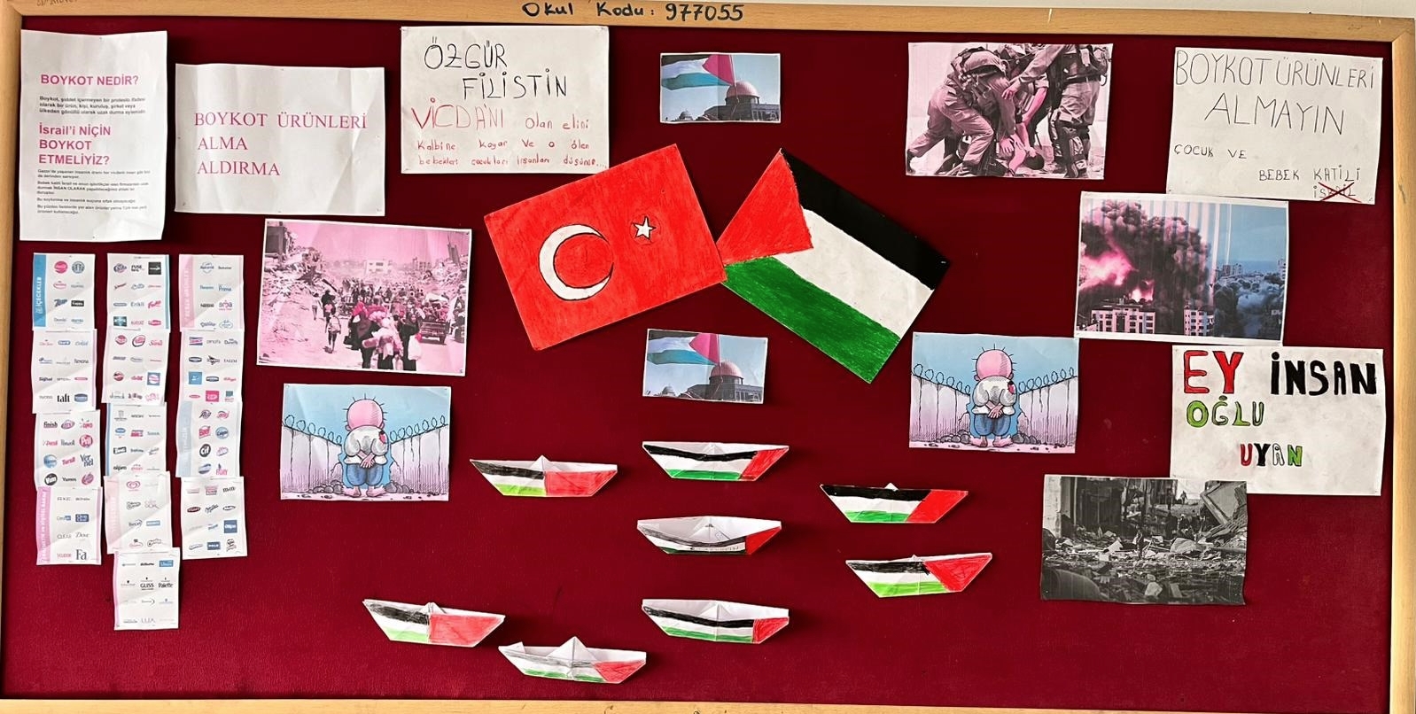7 Ekim 2025 tarihinde Bakanlığımızın öncülüğünde ilçemiz genelindeki tüm okullarda eş zamanlı olarak "Filistin-Gazze Temalı Farkındalık" etkinlikleri düzenlendi. Öğrencilerimiz; şiirler, resimler, drama gösterileri ve sunumlarla Filistin halkının yaşadığı insanlık dramına dikkat çekti. Etkinliklerle, mazlum coğrafyalar hakkında duyarlılık kazandırmak ve barışın önemine vurgu yapmak hedeflendi. Öğretmenlerimizin öncülüğü ile hazırlanan etkinliklerden kareler ve öğrencilerimizin yürekten mesajları, insanlığın ortak vicdanına ses oldu.